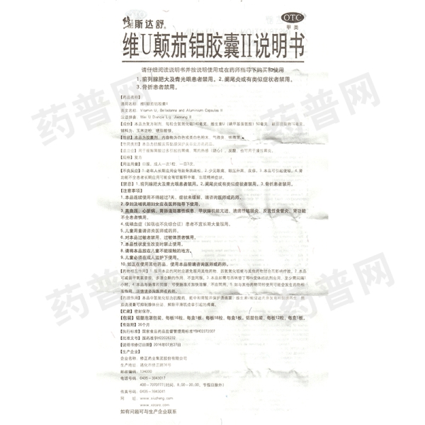 维U颠茄铝胶囊Ⅱ(斯达舒) 16粒