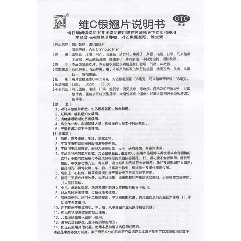 • 产品名称康奇力 维C银翘片.双层片 0.51g*12片