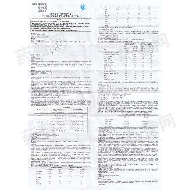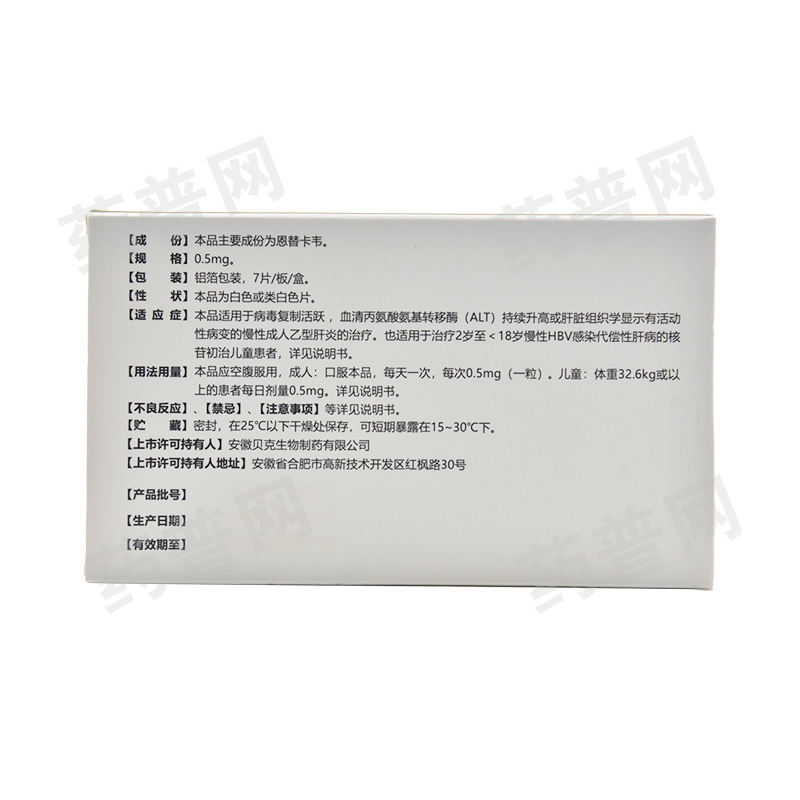• 产品名称贝双定 恩替卡韦分散片 0.5mg*7片