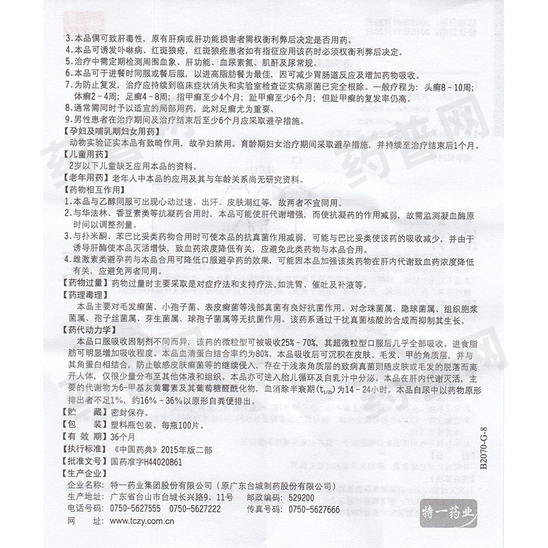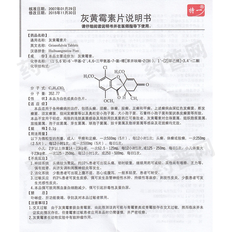 | 特一 灰黄霉素片 0.1g*100s说明书 | |