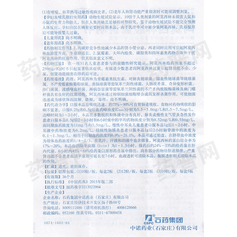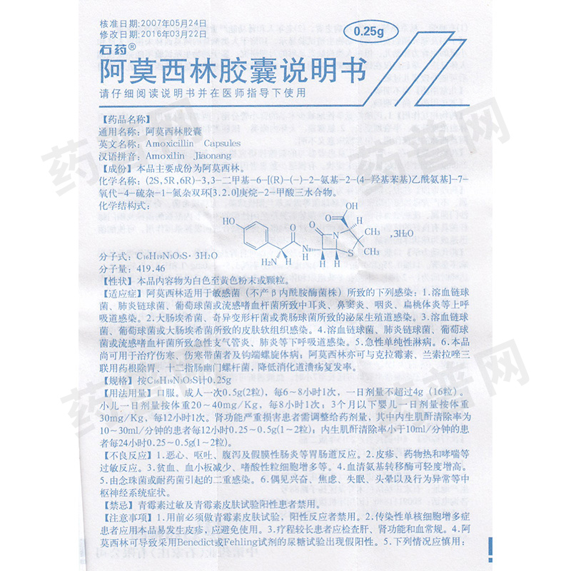 • 产品名称石药 阿莫西林胶囊 250mg*20粒