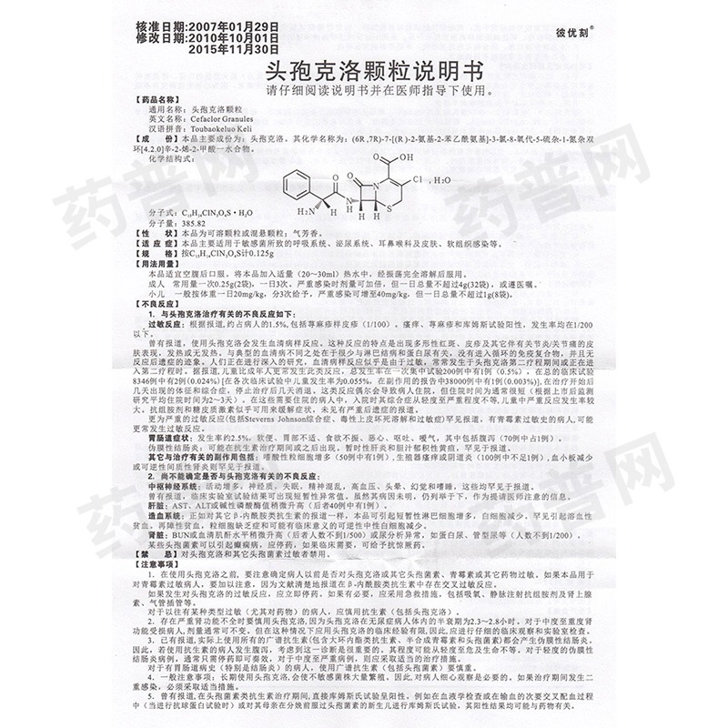 • 产品名称头孢克洛颗粒 0.125g*6袋