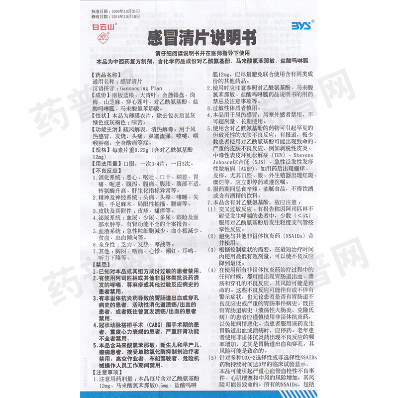 • 产品名称白云山 感冒清片 0.22g*100片