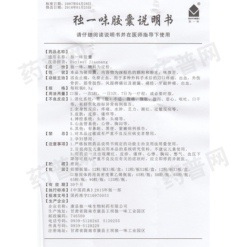 • 生产厂家康县独一味生物制药有限公司